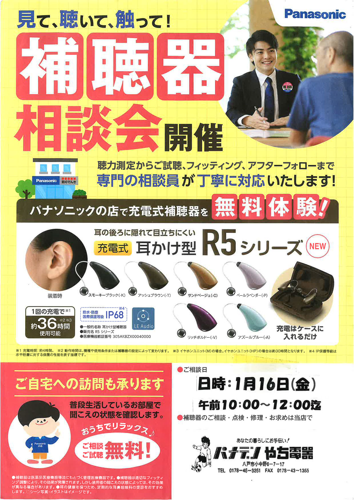 パナソニックの充電式補聴器や、耳の後ろに隠れて自然に使えるタイプをお試しいただけます。